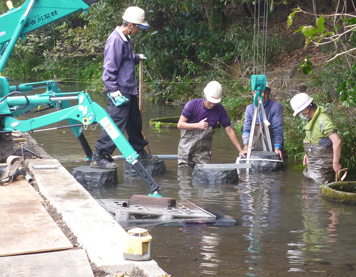 石材加工の高度技術システムを整備した工場で、良質の原石に加工していきます。